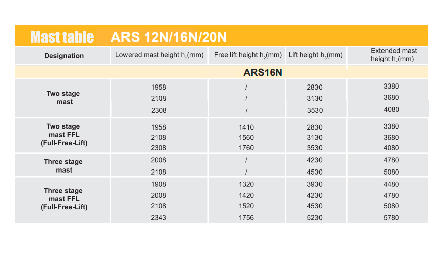 The range of stacker includes the wide list of models with capacity from 1200kg to 2000kg and lifting height up to 5500mm.