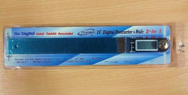 This digital protractor/rule allows you to precisely set and measure angles in 0.05-degree increments. Features a hold function, ensuring you never lose your reading, and a reverse reading capability for those hard to calculate angles. The protractor measures angle from 0 to a full 360 degrees. Packaged in a protective plastic case with an extra battery.