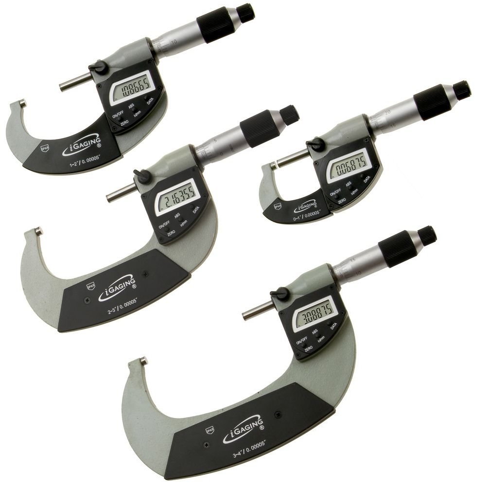 clear, easy-to-read LCD display, accurate up to 0.00016”. Hardened and ground spindle with carbide anvil ensure durability and accuracy. Comes in a padded case with adjustment wrench, instructions booklet, and extra battery.