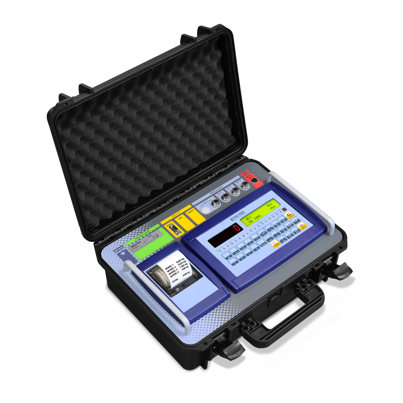 Multifunction high-performance digital weight indicator in Rack version, complete with 4 connectors for linking the platforms, built-in rechargeable battery with charger, and case. Particularly suitable for mobile weighing applications. CE-M approvable (OIML R-76 / EN 45501).