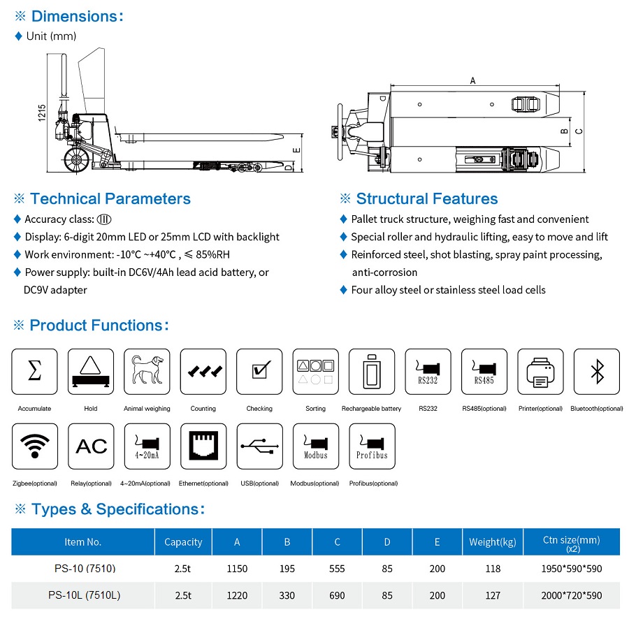 • Each pallet truck is tested and supplied with the corresponding certificate to guarantee the declared accuracy.